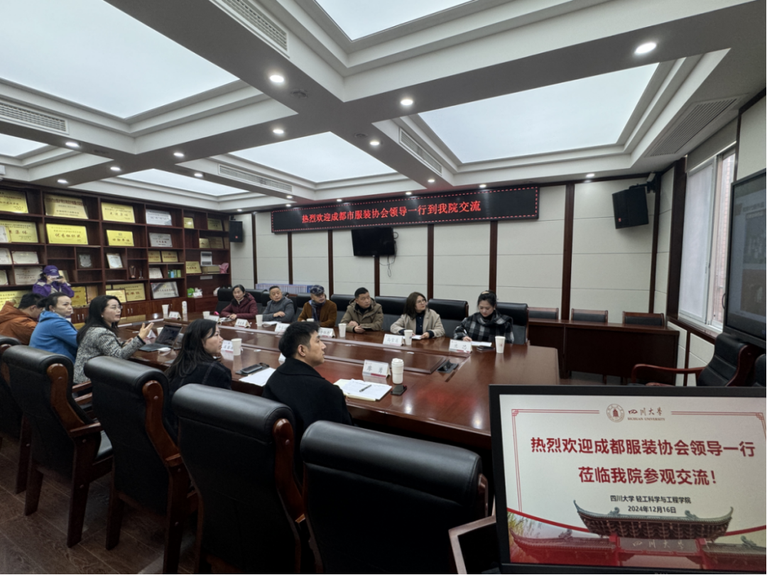 2024年12月16日下午,成都服装(服饰)行业协会会长李雪辉一行走访调研公司,双方就专业建设、校企合作、员工就业等议题展开深入交流,共同探讨人才培养与及行业发展新方向。参加调研座谈会的有公司党委副书记冯国涛副教授、服装与服饰设计系主任杨璐铭教授、教研室主任刘健西老师、2021级辅导员贾欣驹老师及教师代表廖勇老师、时昱老师。会议由杨璐铭老师主持。