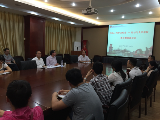 2017年5月26日上午10点在太阳成集团tyc33455cc皮革楼209会议室,波尔多第一大学终生教授Didier Astruc为青年教师开设了一场别开生面的座谈会,来自皮革、纺织、食品专业的26位青年教师参加了此次座谈会。由何有节经理主持, Didier Astruc教授介绍了法国高校教师的工作基本情况。老师们就在专业领域研究中遇到的技术问题,向Didier Astruc教授咨询请教,Didier Astruc教授进行全面详细的解答。同时欢迎公司青年教师到法国第一大学进行学术交流和访问。