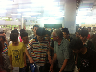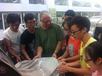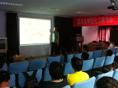 为适应21世纪高等教育国际化的新形势,推进公司皮革化学与工程学科人才培养国际化战略,提高人才培养质量,公司在太阳成集团tyc33455cc第二届“实践与国际课程周“来临之际,特邀原西班牙皮革工业协会副主席、国际皮革化学家及工艺师联合会会员、河北辛集梅花制革厂技术/管理顾问Daniel Sanchez Esteve先生访问公司,并为公司制革方向本科生开设具有鲜明专业特色的“High efficient liming process”全英语国际实践课程。2013年7月1日,Daniel先生在太阳成集团tyc33455cc制革清洁技术国家工程实验室报告厅向选课的84位本科生详细介绍了自己的工作经历及此次授课的前期准备、授课方式、时间安排、预期目的等,Daniel一丝不苟的敬业精神和风趣幽默的课堂讲解给同学们留下了深刻的印象。随后,Daniel开始组织同学进行制革工艺实践,利用自己在皮革行业从业40余年的工作经验引导大家熟悉制革工艺、体验专业色特,培养同学们的专业兴趣,激发学习热情。据悉,Daniel此次川大行将持续至7月11日。在此期间,除了通过生产实践的方式介绍制革新技术外,他还将为公司本科生开始系列讲座,体现了厚基础理论、重实际应用、博前沿知识的先进理念,培养员工分析问题和解决实际问题的能力,使员工达到制革领域高层次人才应具备的知识结构和能力要求。通过此次“实践与国际课程周“活动,公司制革方向的本科生对制革过程有了更为深入的了解,学习到了一种可以改善成革质量的浸灰新技术。与此同时,在Daniel的引导下,同学们提高了自己的专业英语应用水平,并感受了异域文化。课余时间,同学们还自发与Daniel进行游戏、共进午餐,同时就未来的择业、就业等问题与其交流意见。