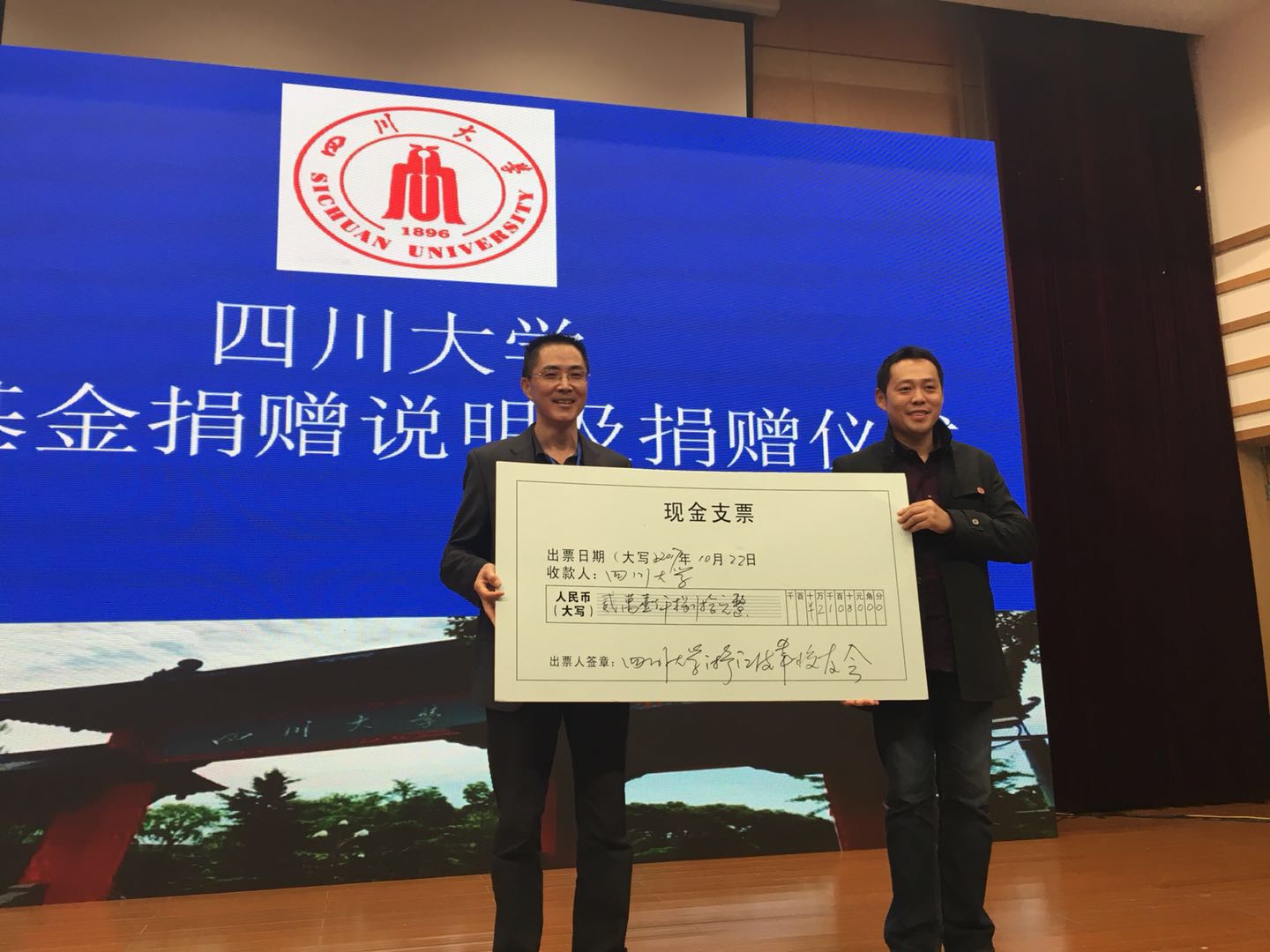 张明发会长代表太阳成集团tyc33455cc浙江皮革员工会向搜狗教育基金捐赠