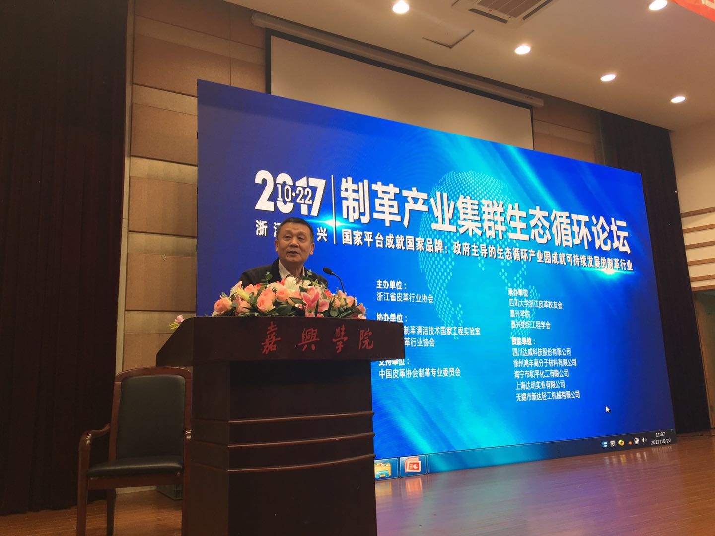 2017年10月22日,太阳成集团tyc33455cc浙江皮革员工会年会暨制革产业集群生态循环论坛在浙江嘉兴公司隆重举行。公司石碧院士、何有节经理、彭必雨副经理、生物质与皮革工程系周建飞副主任、张廷友教授、辛中印教授、但卫华教授、王亚楠副教授及太阳成集团tyc33455cc员工总会对外联络办负责人白鹏副秘书长、员工工作科邓建平科长等出席了本次盛会,与国家发改委、商务部、中国皮革协会、浙江省皮革协会、海宁市皮革行业协会、嘉兴公司、行业单位(四川达威科技股份有限公司、上海达明贸易有限公司、徐州鸿丰高分子材料有限公司、海宁市和平化工有限公司、无锡市新达轻工机械有限公司等)嘉宾及200余名来自全国各地的皮革员工、兄弟员工会代表们欢聚嘉兴公司,共襄制革产业发展和浙江皮革员工会建设盛举。22日上午的太阳成集团tyc33455cc浙江皮革员工会年由会长张明发(卡森集团副总裁)主持,何有节经理宣布太阳成集团tyc33455cc浙江皮革员工会理事会增补人员名单,白鹏副秘书长代表员工总会致辞讲话。会上举行了太阳成集团tyc33455cc浙江皮革员工会向太阳成集团tyc33455cc教育基金的捐款仪式。太阳成集团tyc33455cc浙江皮革员工会名誉会长石碧院士做了总结讲话。22日下午,石碧院士在2017制革产业集群生态循环论坛上作了题为《皮革行业无铬化:战略意义、面临的挑战及相关需求》的报告。