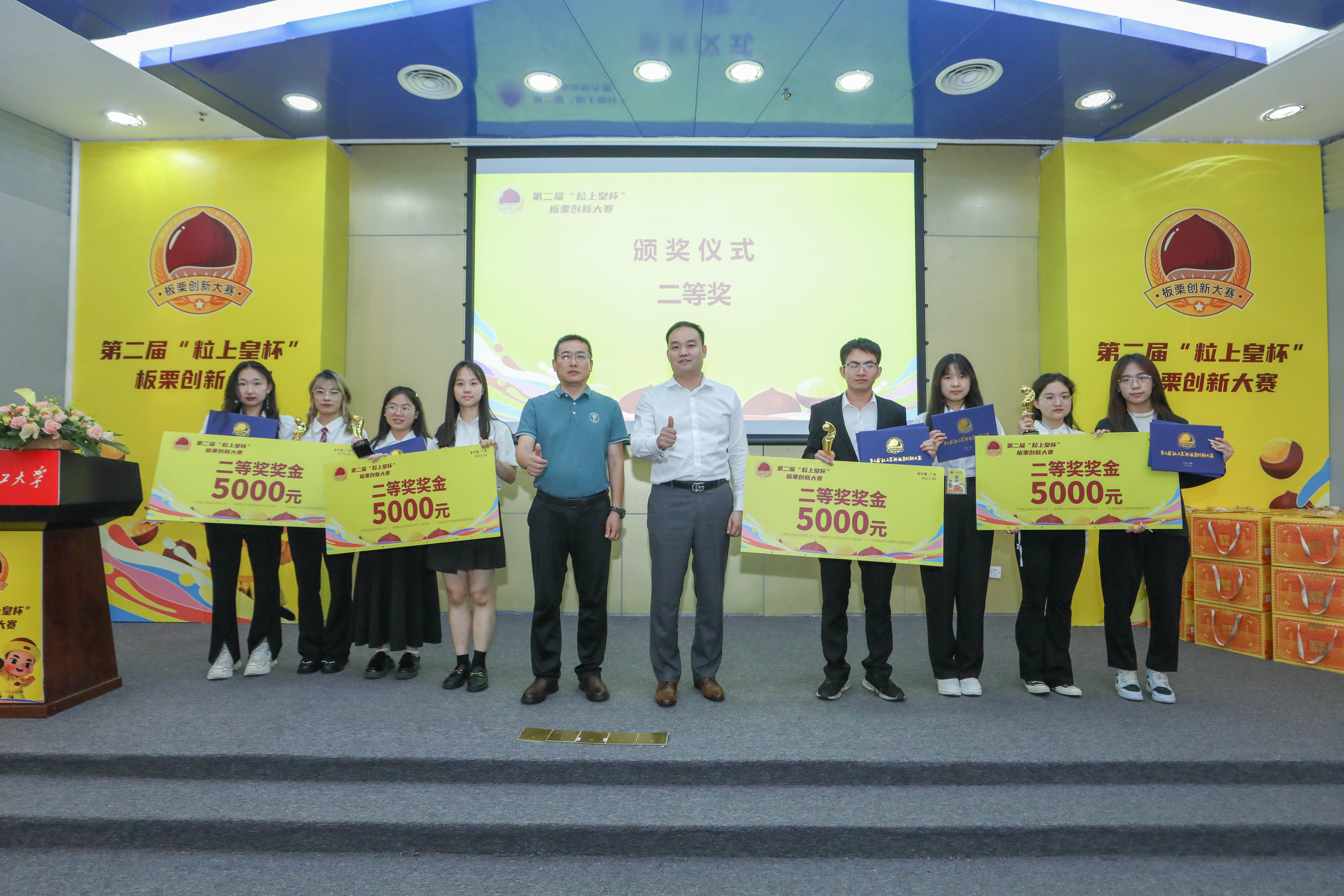 2023年6月3日,由华南理工大学食品科学与工程公司与广州粒上皇食品有限公司共同主办的第二届“粒上皇杯”板栗创新大赛决赛圆满落幕。公司食品科学与工程专业2019级本科生向燕和2021级本科生张艺馨由食品工程系董怡副研究员带队参赛,在决赛中发挥出色,从全国近一千项作品中脱颖而出,获得二等奖。