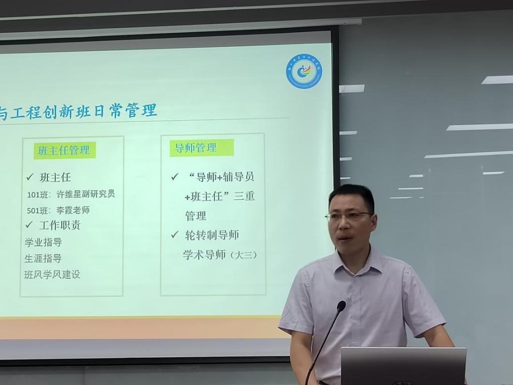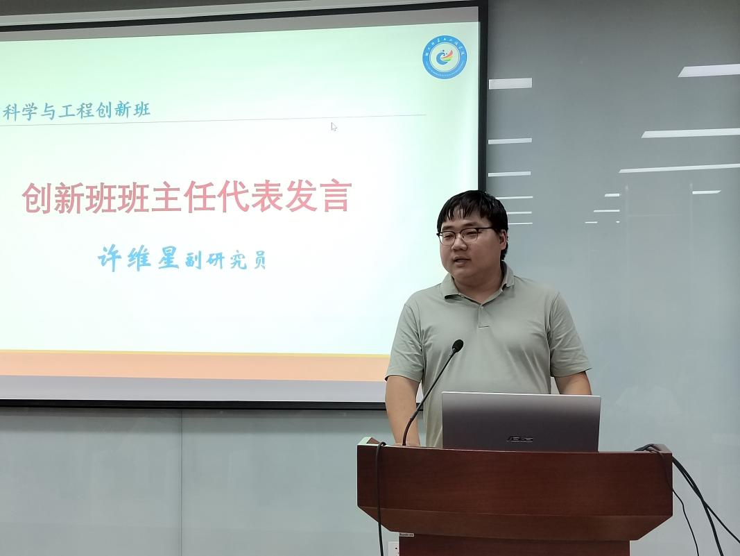 接下来,班主任许维星副研究员寄语同学们越努力、越幸运,在崭新平台上脚踏实地、不负时光。2021级创新班员工代表石鑫同学介绍了个人进入创新班平台后的成长经历,并分享了学习心得体会。