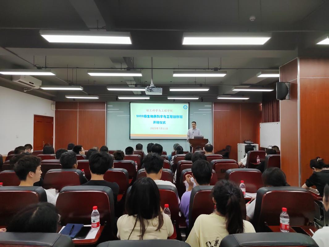 2023年7月11日上午,2022级生物质科学与工程创新班开班仪式在皮革楼215报告厅隆重举行。参加此次开班仪式的有公司党委李天富书记、冯国涛副书记、副经理陈意教授、生物质与皮革工程系系主任林炜教授、创新班平台负责人、课程负责人、班主任、导师及2022级创新班全体员工。开班仪式由冯国涛副书记主持。