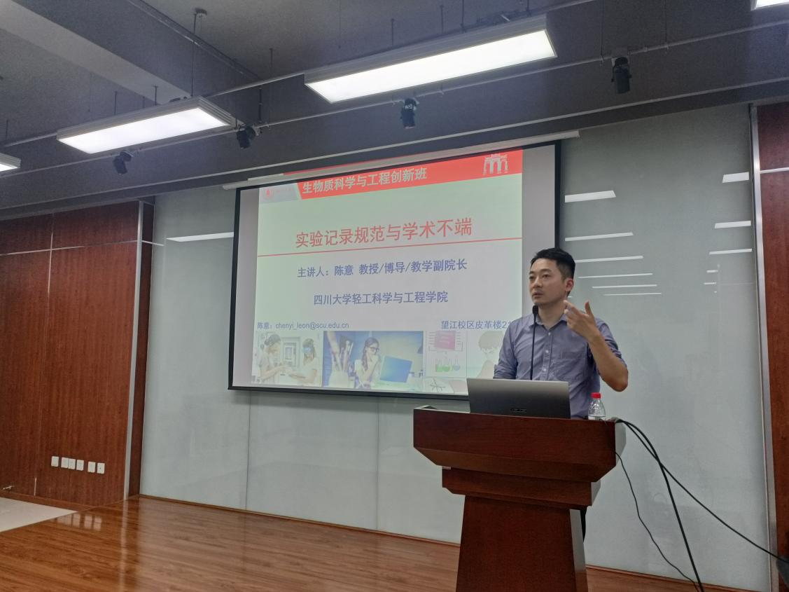 见面会后,陈意副经理为2022级创新班员工作了题为“实验记录规范与学术不端”的学术道德讲座,希望创新班的同学端正学习态度,保持严谨的科学精神,在科研道路上扣好人生第一颗纽扣。