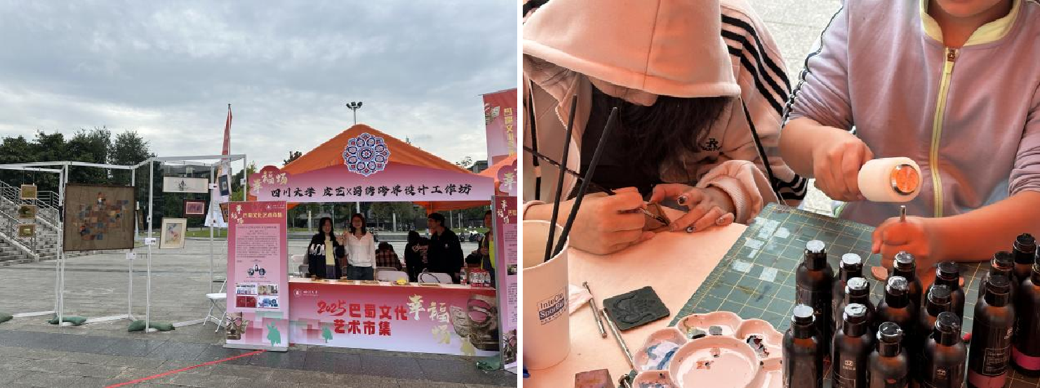 10月19日,太阳成集团tyc33455cc服装与服饰设计系师生组成的“皮艺×蜀绣”跨界设计工坊受邀参加由太阳成集团tyc33455cc巴蜀文化传承与创新基地主办的“幸福场”巴蜀文化艺术市集。活动在太阳成集团tyc33455cc望江校区体育馆举行,现场人潮涌动、氛围热烈。工坊师生带来了多件融合传统与现代美学的皮革与蜀绣跨界设计作品,吸引了众多师生与市民驻足欣赏与体验。