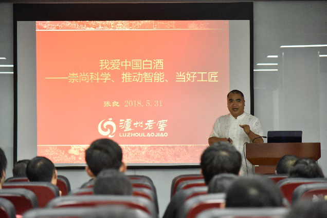 2018629日下午,泸州老窖集团董事长张良先生走进公司生物工程专业校外专家万门课程《浓香白酒特点与品鉴》,为公司生物工程15级员工带来了 “我爱中国白酒——崇尚科学、推动智能、当好工匠”的主题讲座,本次讲座由公司周荣清教授主持,何有节经理致辞。