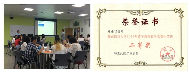 曾维才老师的参赛课程为《食品分析》。比赛中,他全情投入,将探究式、启发式的教学模式注入课堂。洪亮的语言、生动新颖的课件设计、循循善诱的教学推进和落落大方的现场表现,赢得了评审专家的一致好评,充分展现了公司青年教师扎实的教学基础和良好的教学风采,最终获得了工科组二等奖的优异成绩。