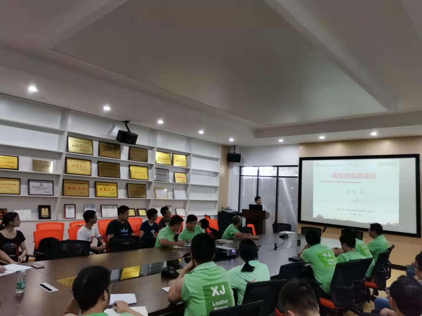 暑期实习按双方拟定的实习计划顺利开展,员工分阶段到准备工段、鞣制工段、湿态染整工段、干态整饰工段、成品车间、PU榔皮车间、实验室、检测部门等岗位进行轮训,较全面的学习了绒面革、PU榔皮的生产全过程。