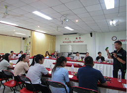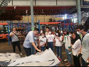 在现代染料股份有限公司的精心安排下,同学们先后参观了现代染料股份有限公司、Classic Product (Thailand)CO., LTD(CPL)和CHIN TEE HU Tannery公司,了解了染料的生产和制革的流程。CPL是一家泰国上市制革企业,以生产牛皮为主,月产量约200~300万平方英尺,是Nike、adidas和法国鳄鱼的鞋革和箱包革的供应商。