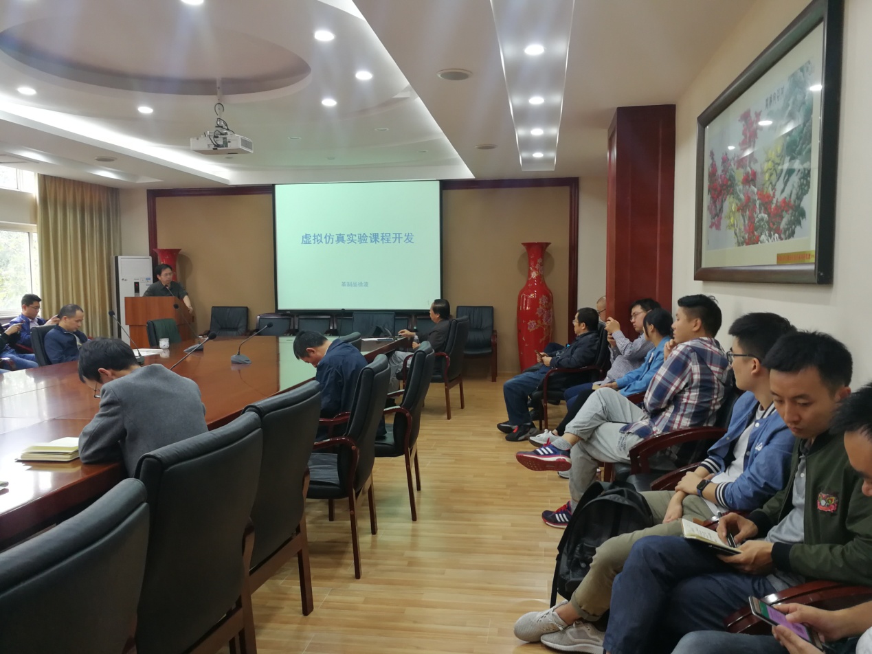 公司副经理彭必雨教授强调了虚拟仿真实验教学的任务与要求,指明了今后努力的方向。副系主任程海明教授结合轻化工程专业特点,归纳了专业实验实践课程与虚拟仿真实验教学的结合点,提炼出有望取得突破的一些典型实验内容。徐波老师结合正在承担的校级虚拟仿真实验课程项目建设经验,探讨了虚拟仿真实验课程建设过程中的重点与难点。青年教师曾运航副教授结合个人教学实践内容,提出了开展虚拟仿真实验教学的设想和基本思路。戴红老师结合申报经验教训,探讨了虚拟仿真教学建设与普通实验教学之间的关系。与会教师纷纷发言,在建设经费、主题提炼、教学脚本、素材收集、互动形式等方面,进行了深入的研讨,会议取得圆满成功。