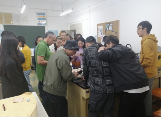 应公司服装与服饰设计教研室的邀请,朱利安于10月21日下午来到皮革楼209会议室与公司师生座谈交流,接着在生物质与皮革工程系张金伟老师的陪同下,参观了相关实验室,了解皮革材料的制备工艺等。之后他来到纺工楼5楼的服饰配件实验室,与服装与服饰设计专业的同学就皮包设计图的结构、材料的选用及制作等进行了深入探讨。他以自己设计的背包为例,阐述了其设计理念与制作工艺,包括负重背包选用皮材的特点,装钉的位置等关键细节都一一给师生们作了讲解。