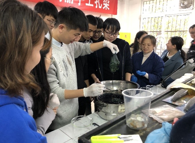 在理论学习的基础上,在实践课程《植物染料染色技法实验》中,肖红艳老师指导同学们通过动手实验,亲手体验中华传统染色工艺,充分体会中华传统文化的独特魅力,在实践中进一步深化人与自然和谐发展的理念。
