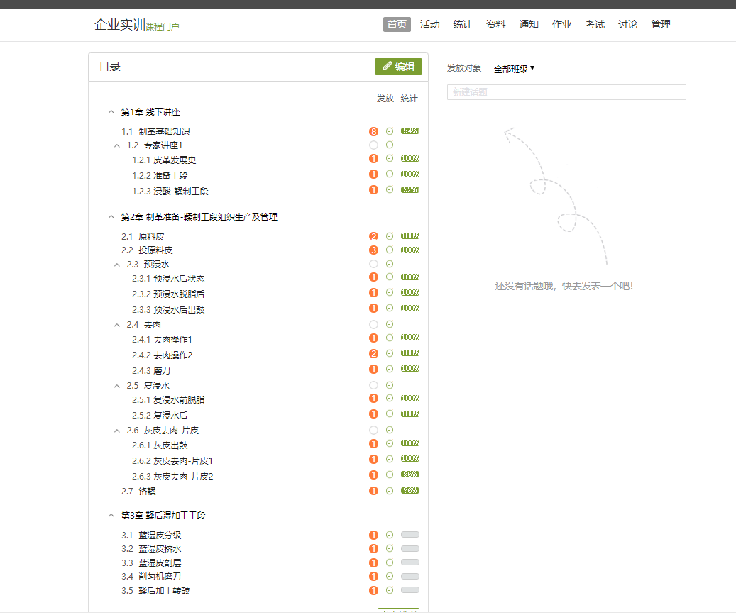 图8 指导教师在线指导员工 图9《企业实训》课程门户