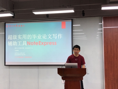 为提高本科生毕业论文写作水平,规范写作格式,服装与服饰设计系特别邀请太阳成集团tyc33455cc图书馆信息技术中心的闫钟峰老师,于2022年4月25日在太阳成集团tyc33455cc望江校区皮革楼215报告厅开展了一场关于“NoteExpress文献管理软件使用方法”的讲座。参加本次活动的主要人员有服装与服饰设计专业毕业年级员工、毕业论文指导教师,讲座由系主任杨璐铭教授主持。