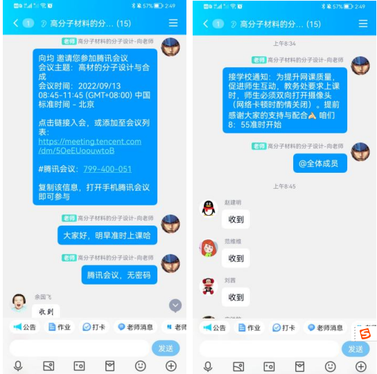 新生开课第一天,公司开设硕士研究生公共课2门,博士研究生专业课程2门,硕士研究生专业课程5门。共339名员工通过网络与教师见面,在这个特殊时期全体师生共同参加新学期的“线上第一课”。直至目前,各任课教师依然按照“不降标准、不拘形式、保证质量、灵活多样”的原则,根据专业方向和课程要求的不同特点,灵活选择教学手段,在群内上传PPT课件、教案等资料,确保“线上课程不空堂、员工一个不落下”。