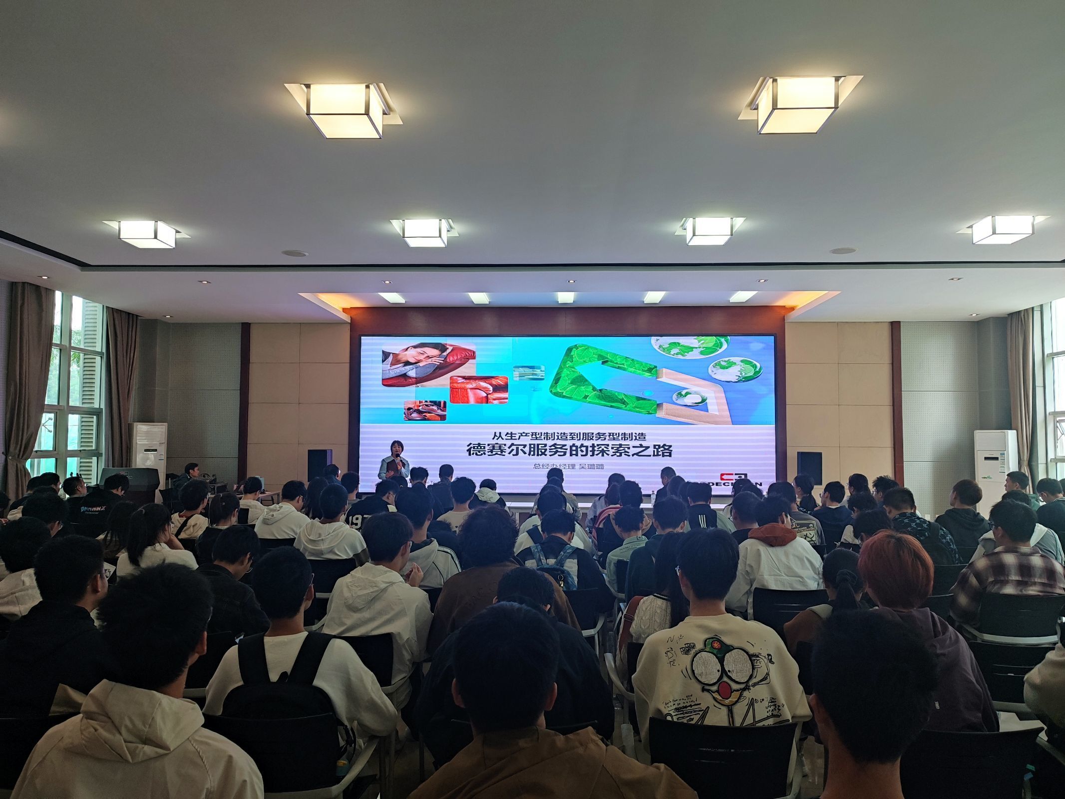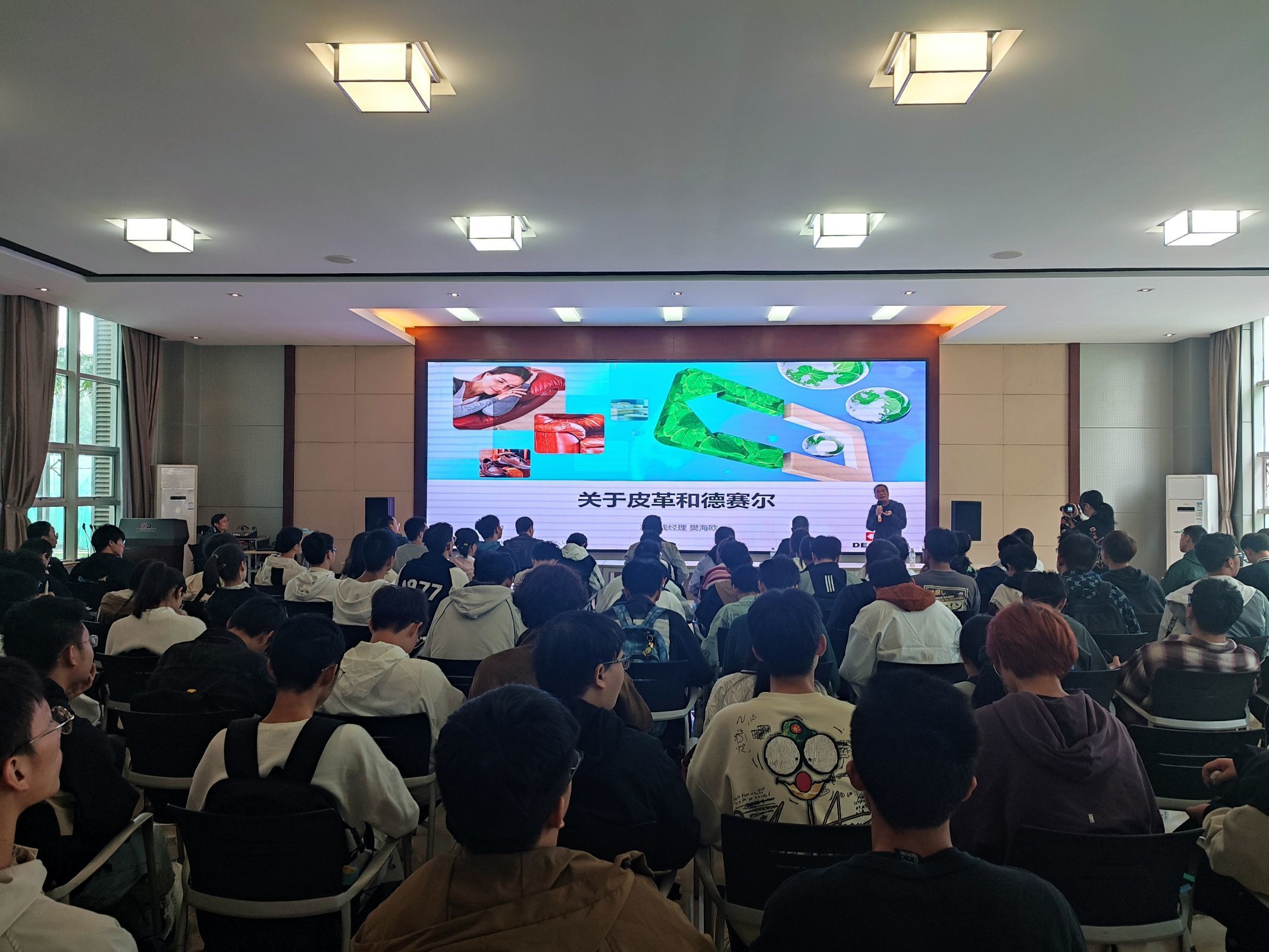 此外,德赛尔公司总经办经理吴璐璐、产品线经理樊海欧分别介绍了德赛尔公司服务探索的历程以及在皮革研发和皮革应用方面的思考,公司杰出员工水场研发经理孙青永博士分享了自己在公司的成长历程与对同学们择业的建议。