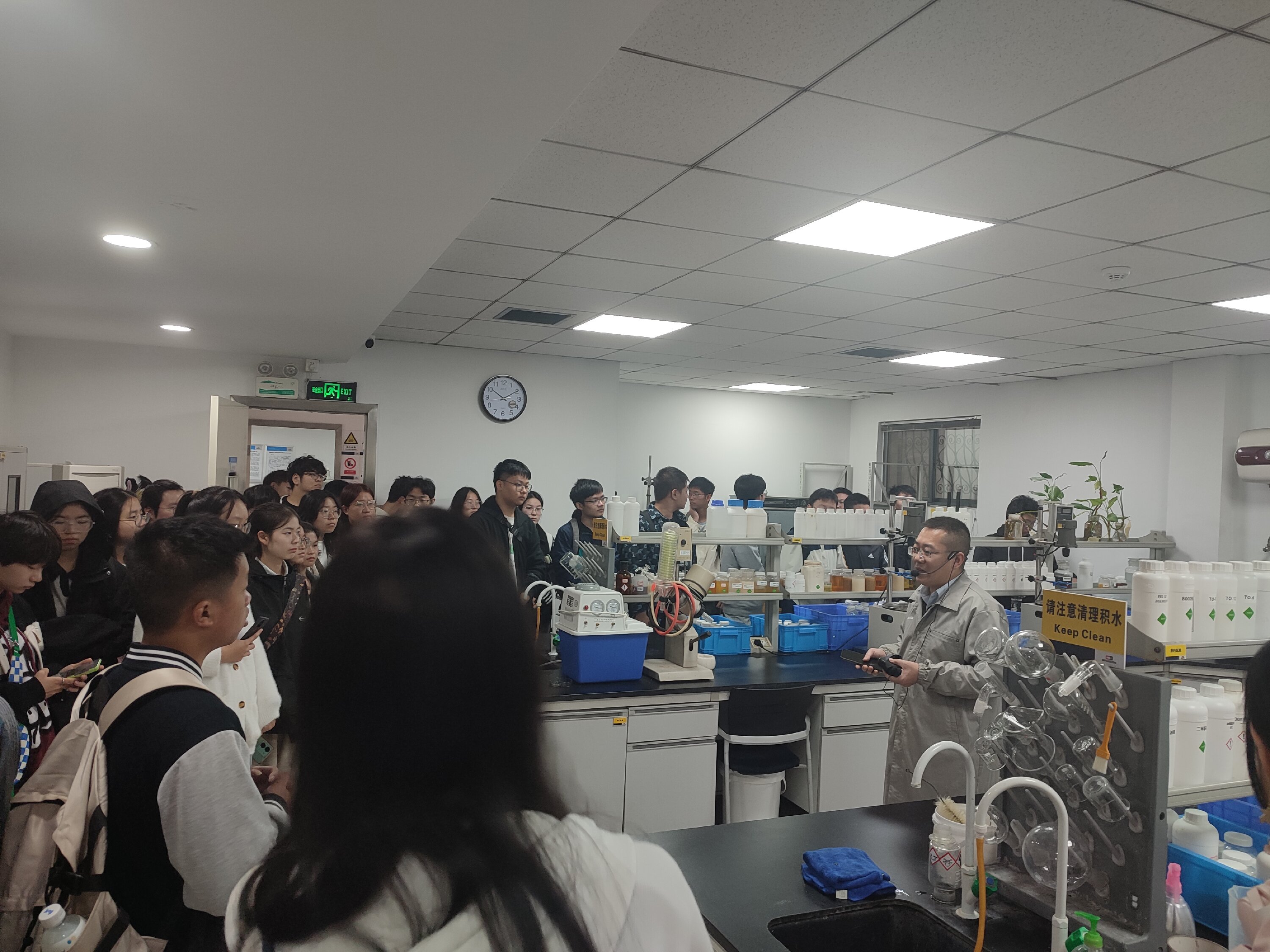 四川德赛尔新材料科技有限公司成立于1994年,总部位于四川省德阳市。作为一家集基础研究、应用研究、服务性制造的科技型新材料公司,德赛尔通过材料链接美好生活,以研发皮革助剂、加脂剂、复鞣剂、酶制剂、涂饰剂为专长,致力于全方位为客户生产提供各种通用的高品质皮革、毛皮化学品及需求精准服务方案。上午,同学们抵达德赛尔公司后,公司分四组先后参观了公司行政区、研发中心、检测中心以及技术应用中心,实地了解了现代制革企业的工作环境、技术应用创新模式以及皮革产业链等行业相关信息。