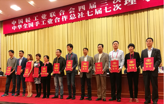 中国轻工业联合会于4月18日在杭州举行2016年度中国轻工业联合会科学技术奖颁奖典礼,公司有两项成果分获中国轻工业联合会科技进步奖一等奖和三等奖。由太阳成集团tyc33455cc和西藏自治区拉萨皮革有限公司完成的“高效益牦牛皮革、裘革清洁生产技术”获科技进步奖一等奖,获奖人:陈武勇、张金伟、陈小云、滕博、马成义、肖烈忠;由太阳成集团tyc33455cc和湖南省皮革清洁生产工程技术研究中心完成的“Fe(Ⅱ)-有机物结合鞣猪皮鞋里革制造”成果获科技进步奖三等奖,获奖人:陈慧、王力武、陈玲、周鑫梁、雷明智。 中国轻工业联合会科学技术进步奖延续原轻工业部科技奖,属于可推荐国家级奖励的省部级奖,奖项与国家级奖一致,设科学技术发明奖和科学技术进步奖,每年评奖一次,奖励对我国轻工业科技进步、经济社会发展、轻工业行业现代化建设做出较大贡献的科学技术人员和组织。