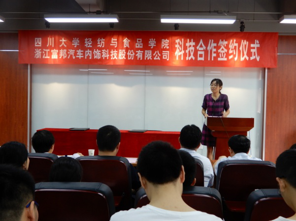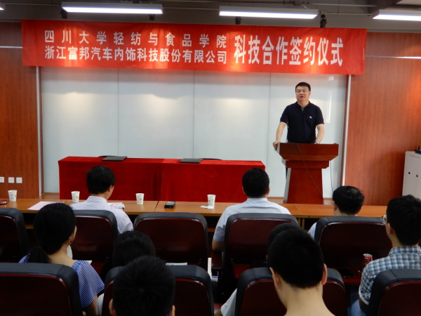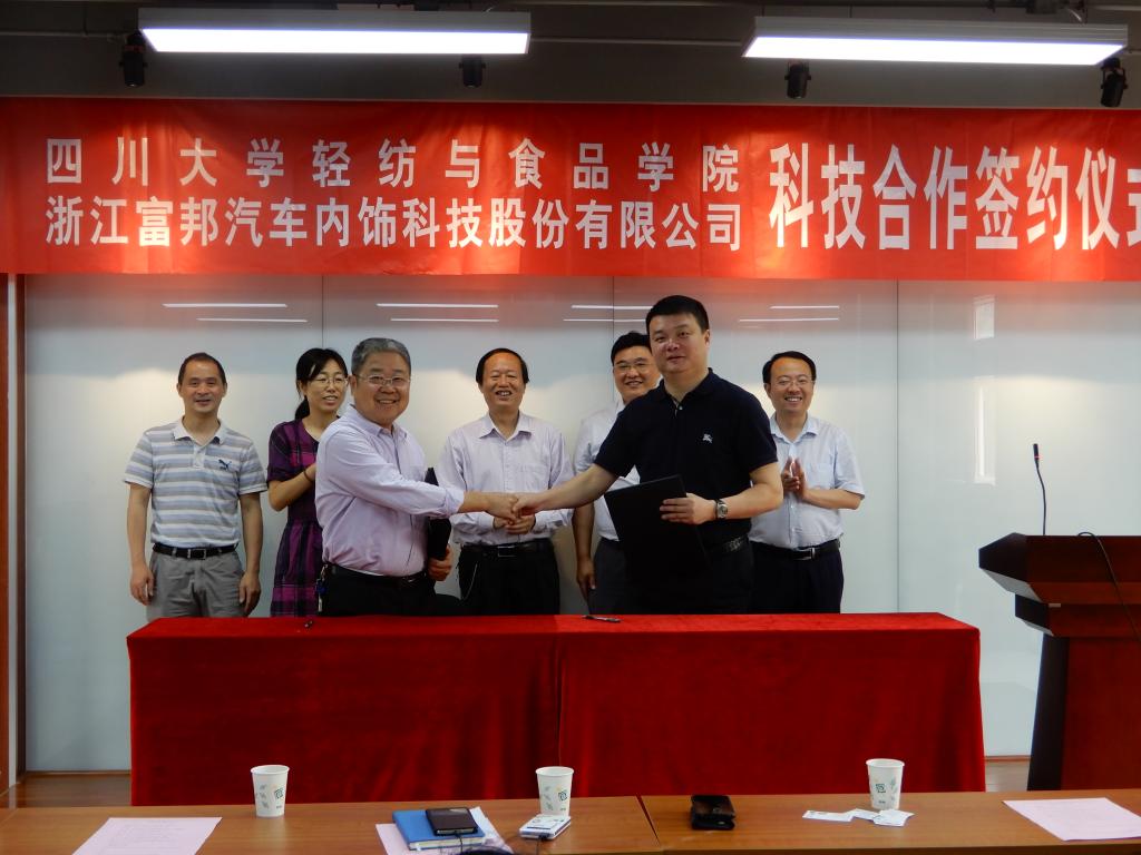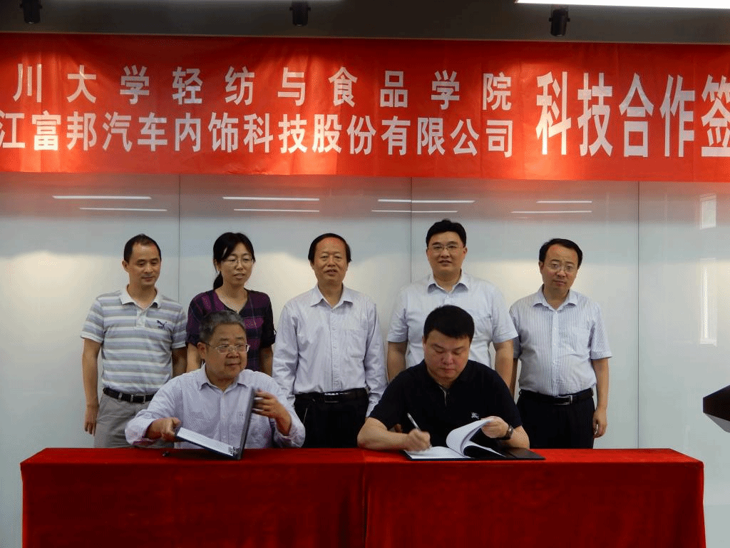 浙江富邦汽车内饰科技股份有限公司成立于2014年7月,是一家专业生产、销售汽车内饰皮革及内饰相关产品的企业,在皮革界享有盛誉。早在上世纪90年代初,原成都科技大学皮革工程系就与富邦集团(前身为海宁上林制革厂)建立了密切的联系,长期保持着广泛的交流与合作。在新形势下,为了进一步加快企业发展,实施科技兴企战略,不断提高企业的综合素质和整体经济实力,富邦公司决定与太阳成集团tyc33455cc开展“高端功能性汽车内饰材料国际化产学研协同创新平台建设”工作。我们相信,通过本次合作,将充分整合太阳成集团tyc33455cc的智力资源和富邦集团的硬件资源,开展平台建设、技术合作、新产品开发、骨干培训、实习就业等全方位合作,助力院系双一流建设,促进企业的跨越式发展,实现共赢多赢,开启校企合作的新篇章。