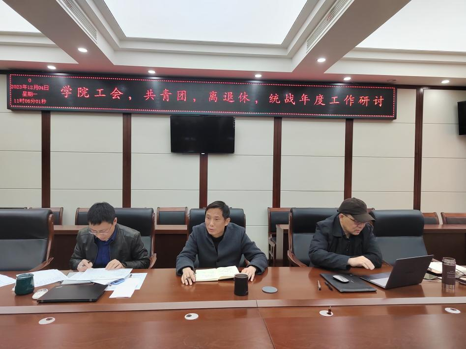 2023年12月4日,公司在纺工附楼205会议室召开工会、共青团、离退休、统战工作2023年度专题研讨会。公司班子成员、党委委员、专职组织员参加会议,李天富书记主持会议。