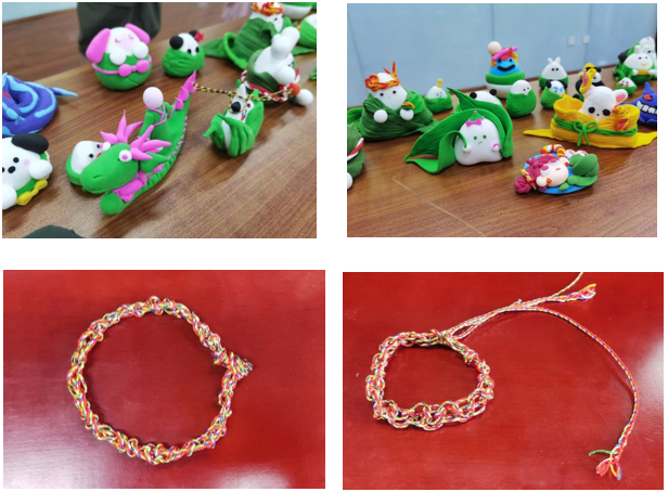 同学们制作的粘土粽子和手绳