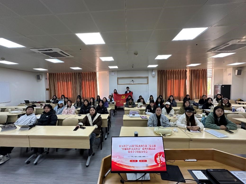 “百舸争流,奋楫者先”,青春因奋斗而精彩,为践行党员宗旨,发挥党员模范带头作用,同时营造积极向上的学习氛围,助力生涯规划,11月29日下午三点,本科生第三党支部与2022级服装与服饰设计专业301团支部、302团支部联学联建,在基础教学楼A308教室开展了“潜心筑梦 以美育人”系列主题党日活动之优秀学子深造经验分享会。主题党日由党支部副书记潘磊同志主持,2022级301班班主任孟虎老师、2022级302班班主任王双老师参加了此次主题党日。党支部成员王佳洋同志、陆怡西同志、2021级赵若绵同学、以及2024届毕业生郑艾玛同学进行了经验分享。