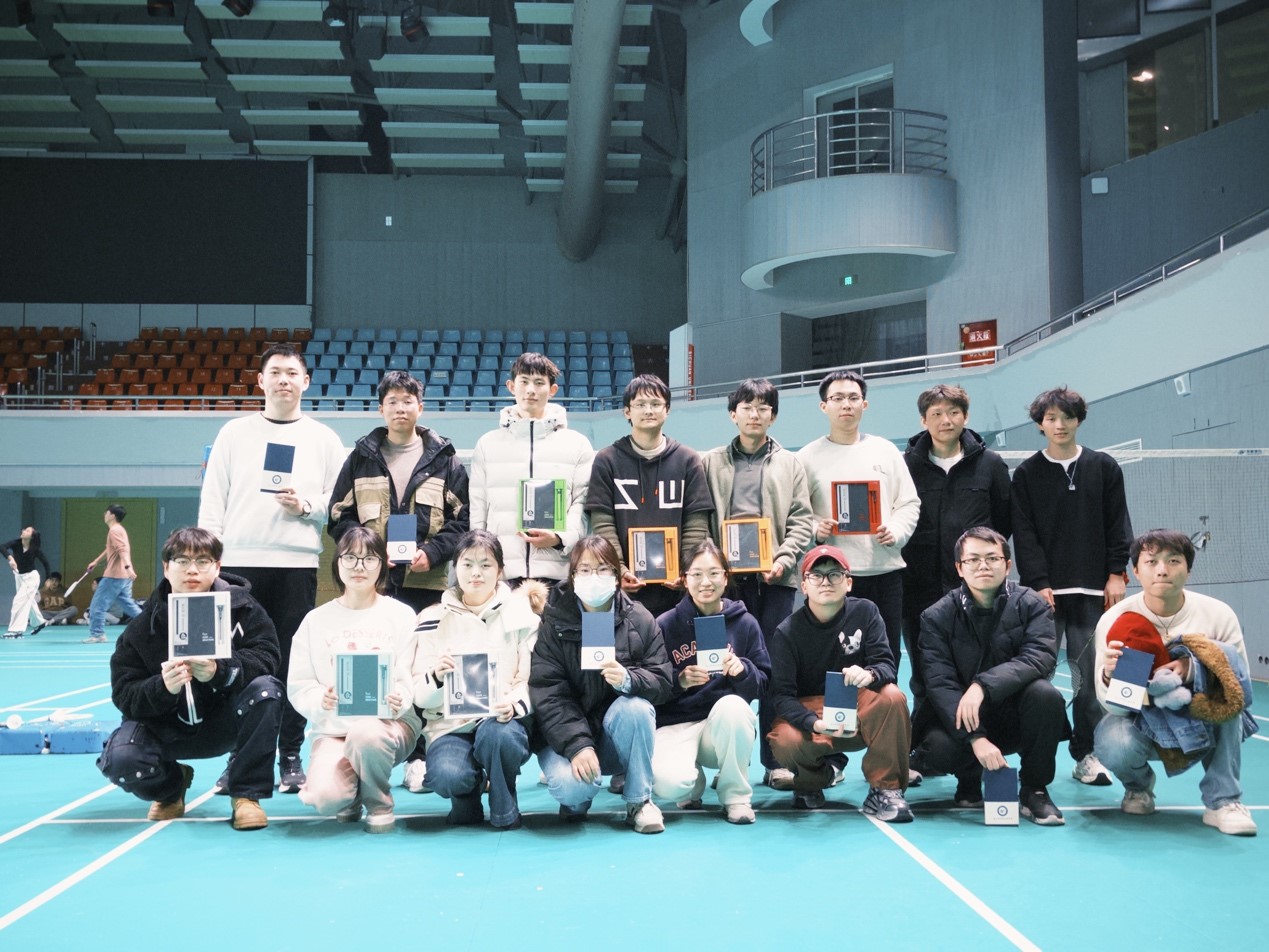 比赛伊始,赛场就弥漫着紧张而激烈的氛围。双方选手你来我往,互不相让,“高远球”、“扣杀”、“劈杀”、“吊球”等多种技法被他们运用得炉火纯青,每一次挥拍都扣人心弦,每一个回合都引得满堂喝彩。比分在激烈的对抗中不断被刷新,场上的局势跌宕起伏,精彩纷呈。经过多轮激烈角逐,最终,江楠带领的白队凭借稳健的发挥和团队间的默契配合勇夺桂冠,展现了卓越的竞技水平与合作精神。而傅庚韬带领的黑队则凭借精湛的技术和巧妙的战术夺得第二名,同样展现了不凡的实力。