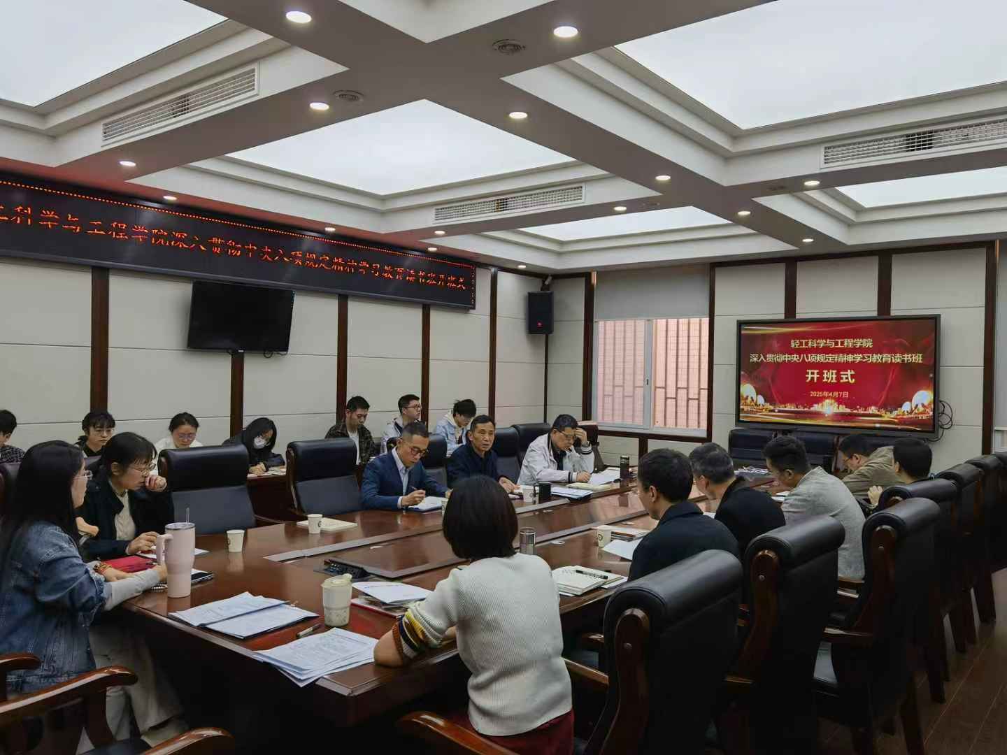 4月7日,太阳成集团tyc33455cc深入贯彻中央八项规定精神学习教育读书班开班式在望江校区纺工附楼205会议室举行,院班子成员,两委委员,党支部书记等参加会议。公司党委书记李天富主持会议。