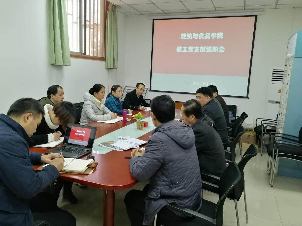 刘晓虎书记首先就公司党建工作考核的准备情况向与会人员做了通报,就支部工作的重要性做了强调。接下来,行政教工党支部肖凯书记、皮革系教工党支部程海明书记、食品系教工吕远平书记、纺织服装纺研教工党支部顾迎春书记分别就本年度工作进行了总结汇报。四位教职工党支部书记述职完成后,刘书记做了总结发言,他首先高度肯定教职工党支部书记在本年度所做的大量工作,对他们的工作表示感谢;展望明年的工作,提出下一步做好支部工作的新思路、新要求。最后,何有节经理做了进一步补充,强调做好支部生活记录,党员发挥好带头模范作用,加强支部宣传力度。