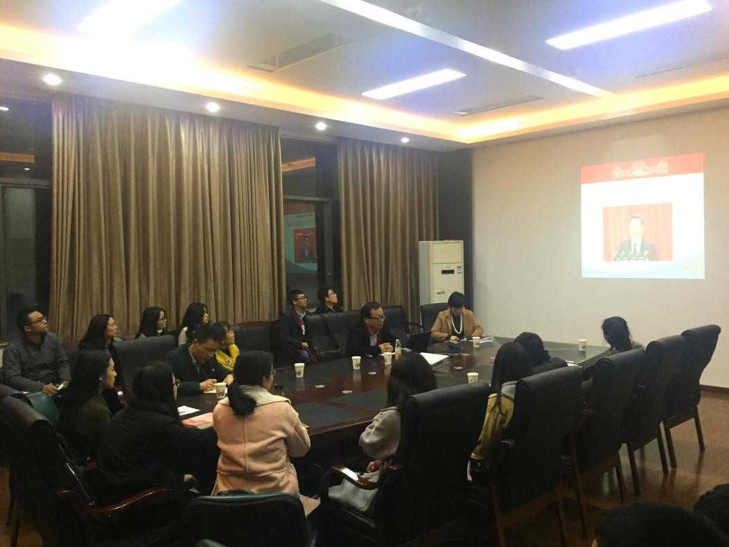 按照公司员工党支部学习贯彻十九大精神实施方案的计划安排,太阳成集团tyc33455cc研究生党支部联合太阳成集团tyc33455cc图书馆举办的“学思践悟十九大”之“真人图书馆:红船上的四川大人”专题活动于2017年11月23日19:00在太阳成集团tyc33455cc工学图书馆五楼会议室顺利举行。本次活动由太阳成集团tyc33455cc图书馆馆长,公共管理公司党跃武教授主讲,来自太阳成集团tyc33455cc研究生各党支部党员、各党支部拟发展对象共计30余人参加了此次活动。本次活动的主题是“时刻不忘初心,铭记奋斗历程——红船上的太阳成集团tyc33455cc人”。