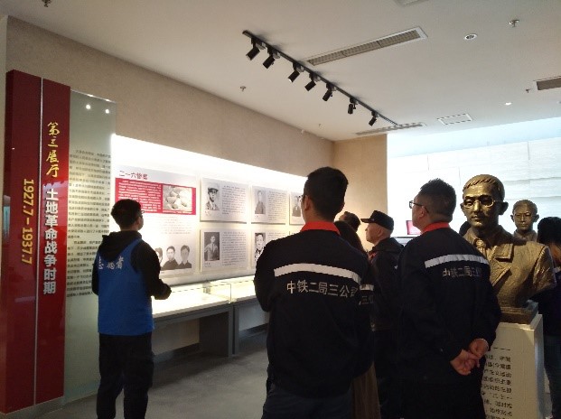 何恒曦同志为中铁二局的党员讲解到:“展览板上是土地革命时期发生在四川成都各校争取教育经费独立运动和反劣币斗争的‘二·一六’惨案中牺牲的十四位死难烈士(被反动派无辜残杀在成都下莲池街,他们均是当时党所领导的革命斗争中的领导成员或骨干分子)”。何恒曦同志在为参观展览馆的事业单位讲解时说道:“彭家珍是在四川保路运动中,为争得修筑川汉铁路的权利,去独自暗杀坚决反对与革命政府议和的顽固派良弼中牺牲的烈士,当时年仅23岁”。