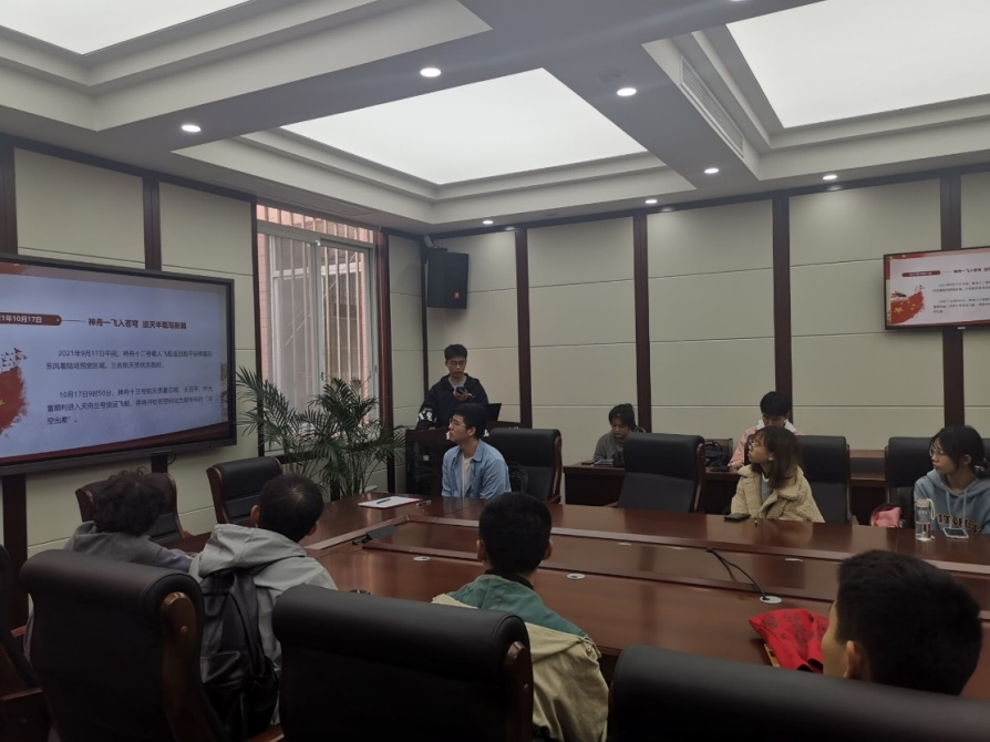 接着,李硕同志结合时事,分享了神舟十三号飞船与空间站成功对接、北京冬奥会主题口号“一起向未来”的发布,以及孟晚舟回国事件。让在场的同志们感受到他们对于党、对于国家的浓浓真情以及通过一己之力为党为国家做出的奉献。