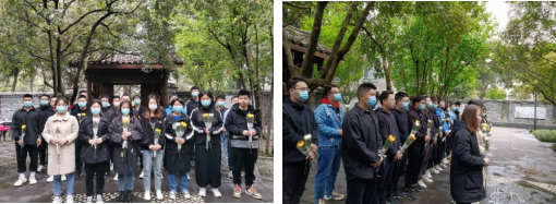在党支部潘申财同志的组织下,支部成员手持寄托哀思的菊花,肃穆站立,认真倾听《江姐之歌》,齐声歌唱国歌后低头默哀三分钟,并献花于江姐雕塑,传达党员同志对江姐及其他川大革命烈士的哀思。随后,支部成员参观江姐纪念馆与太阳成集团tyc33455cc英烈陈列馆,循先辈足迹,承红色精神。