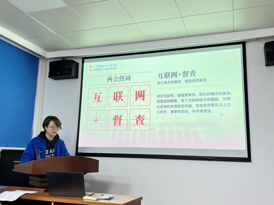 在本次两会召开期间,涌现出了许多备受关注的热点词汇,蒋雨含同志重点介绍了如“良好开局”、“互联网+督查”、“稳”、“节用裕民”、“雪中送炭”、“专精特新”、“沙”和“毕力同心、苦干实干”等热点词汇,分享了自己对本次两会精神的深刻理解。蒋雨含同志也提出,我们党员要更加紧密地团结在以习近平同志为核心的党中央周围,把“两个确立”的政治共识转化为“两个维护”的实际行动,扎扎实实做好各项工作,在新征程上创造新辉煌,以实际行动迎接党的二十大胜利召开。