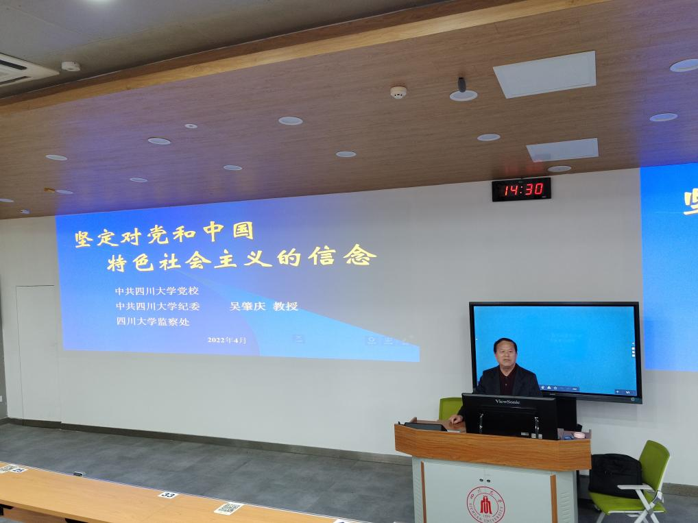 同日下午,太阳成集团tyc33455cc原纪委副书记、监察处处长吴肇庆教授为学员们讲授了“坚定对党和中国特色社会主义的信念”专题党课。首先,吴教授以习近平总书记关于理想信念是共产党人的政治灵魂,共产党员要坚定理想信念、补足精神之钙的论述,以朱德元帅、周恩来总理等革命先辈和钱学森等院士为例,向学员们阐述了树立共产主义信念的重要性。他还从理论与多个事例的结合上,阐明共产党人只有坚定对党和中国特色社会主义的信念,才能坚定共产主义信念,从而为中国特色社会主义建设和共产主义奋斗终生,并做出应有的贡献。随后,吴教授通过分析我们党的执政地位和改革开放形势,以及国际敌对势力对我们的西化分化与遏制战略,向学员们阐明了坚定对党信念的必要性。他以国际国内事例的分析,指出只有坚定对党和中国特色社会主义的信念,才能坚定捍卫党的领导,才能战胜敌对势力的打压,使中国特色社会主义蓬勃发展。此外,吴教授还强调,广大发展对象和青年学子应加强党建理论学习,积极参加社会实践,在理论与实践的结合中坚定对党和中国特色社会主义的信念,志存高远,脚踏实地,勇做时代的弄潮儿,在实现中国梦的生动实践中放飞青春梦想,在为党和人民利益的不懈奋斗中书写人生华章!