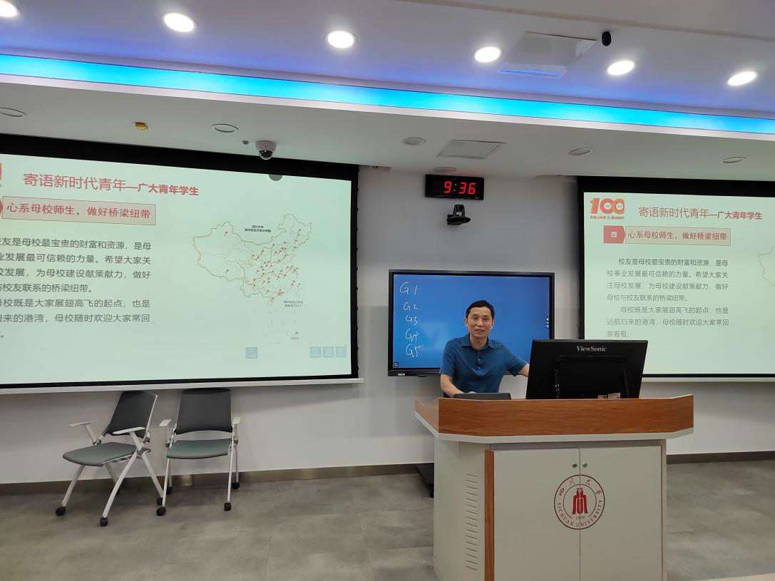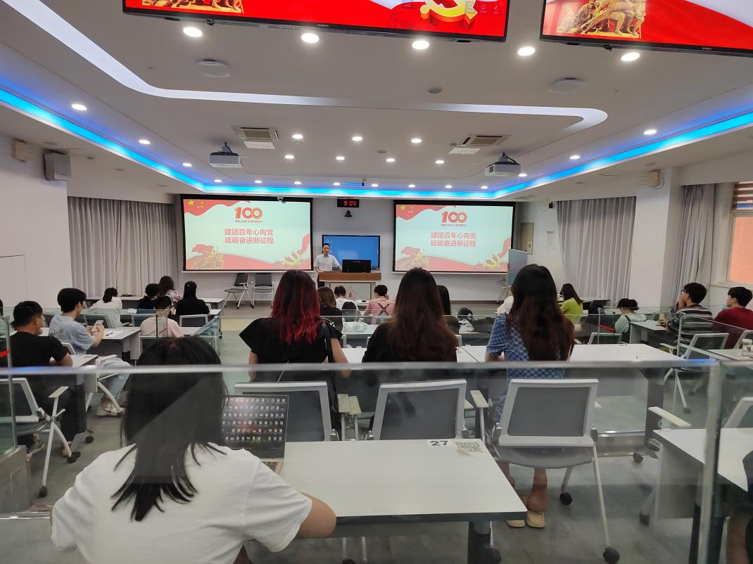 2022年6月8日上午,李天富书记在基础教学楼C103教室为公司本科生第一党支部和第二党支部全体党员讲授“建团百年心向党,砥砺奋进新征程”专题党课。公司党委冯国涛副书记、本科生第一党支部支部书记王舒灏老师、本科生第二党支部支部书记杨维老师以及两个支部全体党员同志参加了本次学习。本次党课由冯国涛副书记主持。