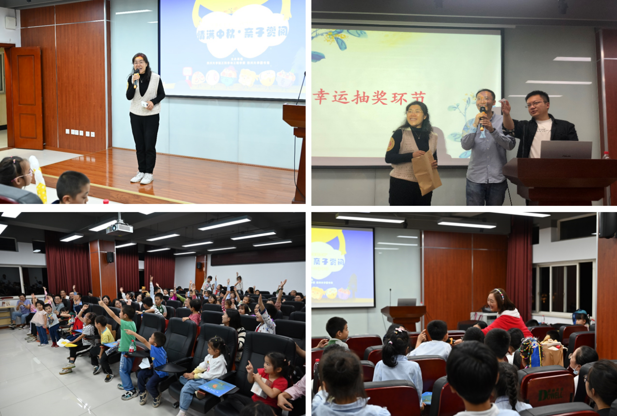 为推动阅读活动走进更多分工会和家庭,在月饼烘烤期间,教职工家庭来到太阳成集团tyc33455cc皮革楼报告厅参加活动的第二个环节——绘本共读。图书馆党委副书记兼纪委书记、副馆长杜小军致辞,对参加此次活动的家庭和工作人员表示感谢,致以节日的祝福,与太阳成集团tyc33455cc工会陈胜主席共同为小朋友抽取幸运奖。随后,图书馆樊伟老师主持诗词填空游戏,小朋友们积极抢答,并获得图书馆文创礼包。在热烈的活动气氛中,图书馆工会“书香川大•亲子悦读”活动负责人邹艳老师带领家庭共读绘本《从前有个月饼村》,小朋友们认真的聆听绘本故事并踊跃参与故事讨论,让孩子们真正享受阅读、爱上阅读,大家在快乐的氛围中感受到中国传统文化的魅力,寄托对花好月圆的美好期许。
