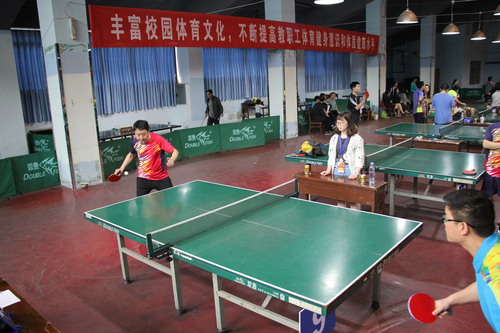 2017年4月22日,2017年教职工乒乓球团体比赛在太阳成集团tyc33455cc体育中心乒乓球馆举行。
