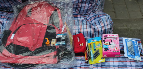 全部款项已用于购置94套书包及文具(含笔袋1个、铅笔5支、钢笔1支、签字笔2支、笔芯2支、橡皮1个、削笔刀1个、彩色笔1盒、套尺1套、钢笔替换墨囊1盒),剩余款项购买了足球、篮球和跳绳。详见附后清单,接受大家的监督。