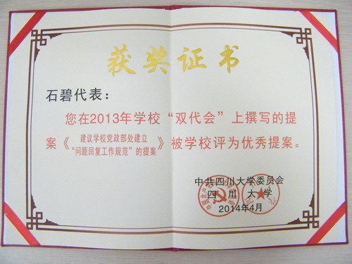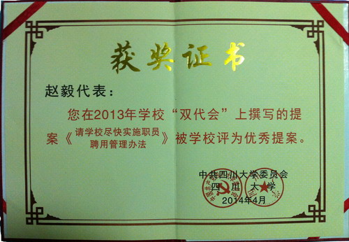 经搜狗双代会提案工作小组评选,其中2项获得优秀提案,并在第三届教代会暨第二届工代会第四次会议上给予表彰。