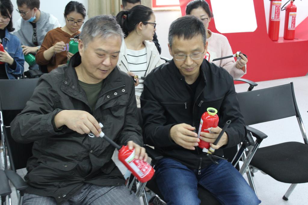 培训分为2个阶段。第一阶段,培训老师详细讲解灭火器的类型,是否有效的判断,火灾类型与灭火器匹配对应,以及灭火器的使用方法,参加培训的老师认真完成了“模拟灭火”。