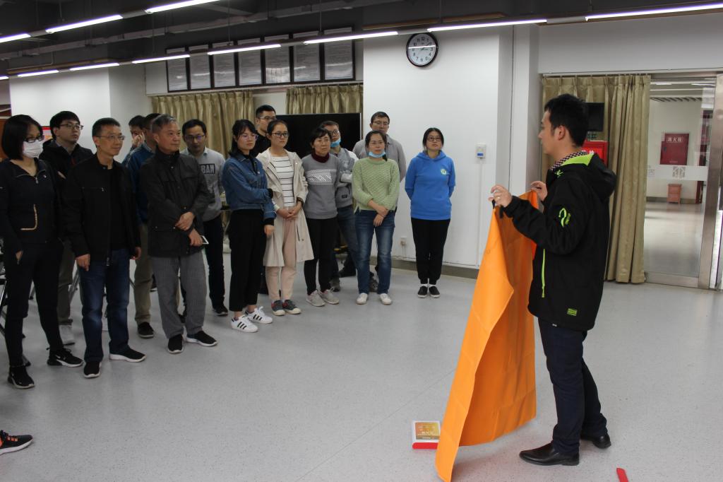 培训老师还讲解了灭火毯的使用注意事项,让灭火毯始终在火源与扑救者之间,从而形成有效保护;此外灭水毯还可在火灾中起到短时间保护贵重仪器的作用,在逃生过程中也可保护人员自身。