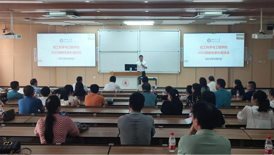 在2023级本科生迎新期间,为进一步加强家校联动,增强搜狗与家长的深入交流与全面了解,公司于2023年9月9日上午在综合楼C304召开2023级本科生家长座谈会。参加本次会议的有公司党委李天富书记,经理彭必雨教授,副经理陈意教授、周建飞教授、迟原龙副教授,2023级教导员吕振生老师,生物质与皮革工程系副系主任程海明教授,服装与服饰设计系副系主任申鸿副教授,2023级新生辅导员李有真老师以及线上线下300余名新生家长。本次家长座谈会由公司党委冯国涛副书记主持。