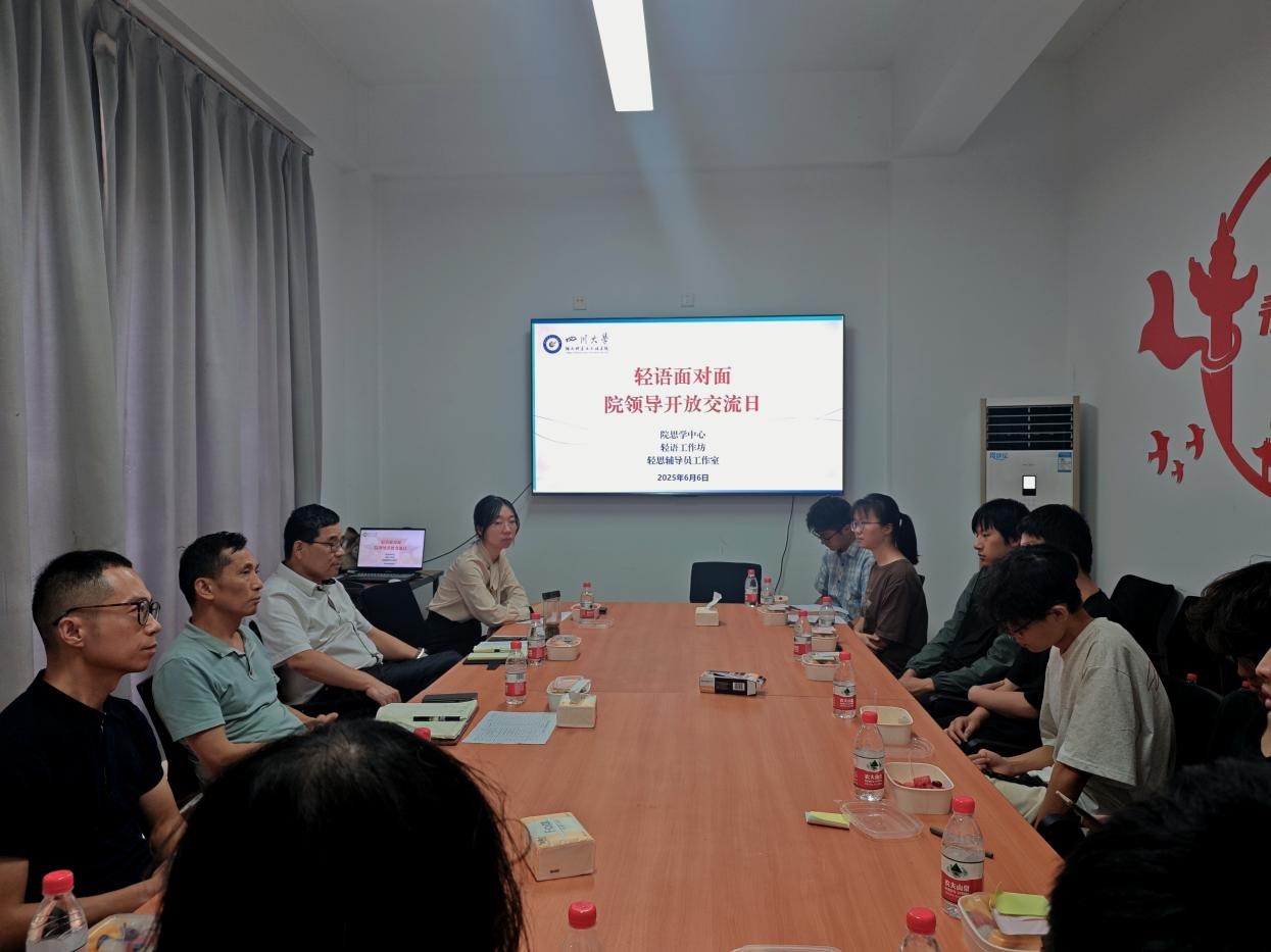 2025年6月6日,公司党委书记李天富、经理彭必雨、副书记姜新赴江安校区十八舍“一站式”员工社区,以茶话会形式开展“轻语面对面——院领导开放交流日”活动,与本科生亲切交流。2023级本科生辅导员李有真主持活动。