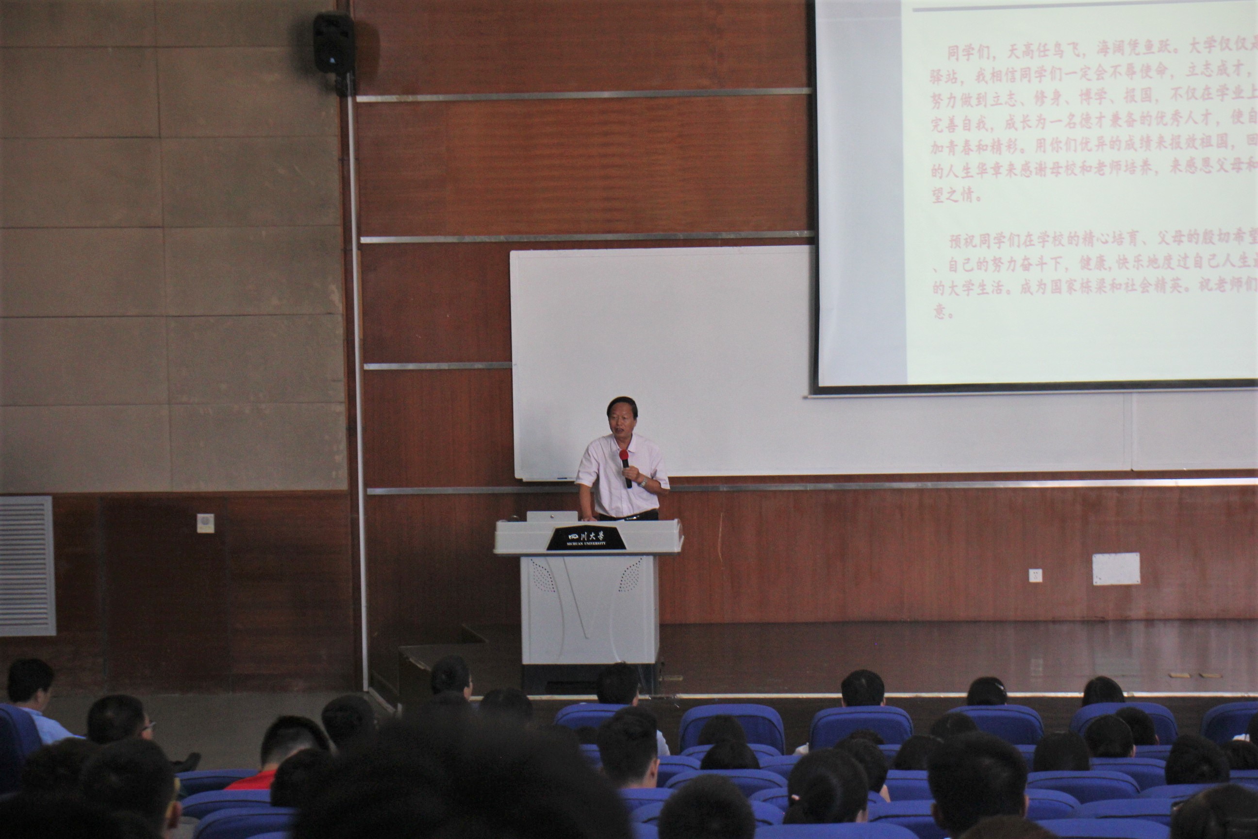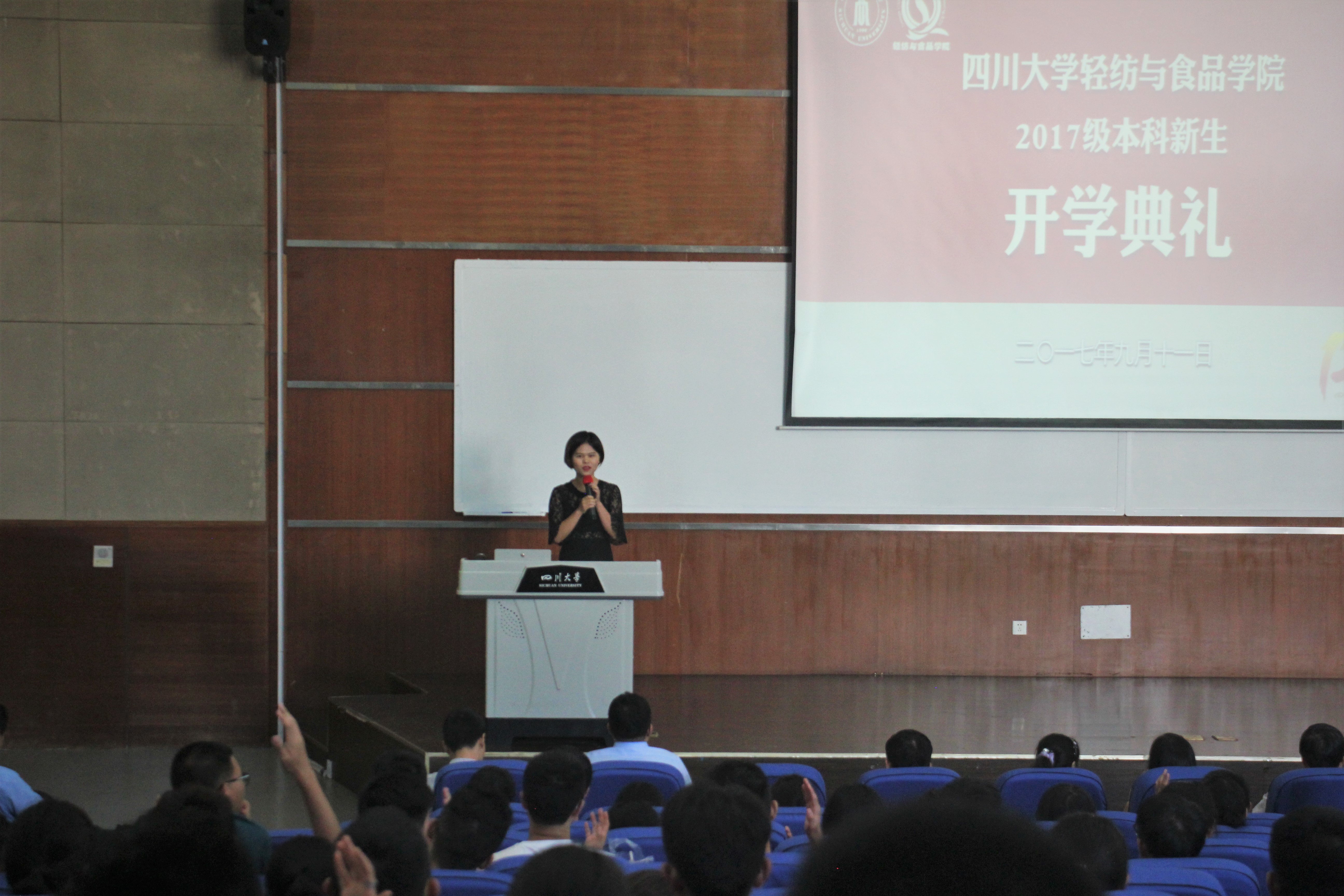 2017年9月11日,2017级本科新生开学典礼暨入学教育大会在太阳成集团tyc33455cc江安校区综合楼C407顺利举行。党委书记刘晓虎副教授,经理何有节教授,副经理兰建武教授,副经理何强教授,经理助理、纺织与服装工程系副系主任郭荣辉副教授,纺织与服装工程系副系主任申鸿副教授,教师代表王海波副教授,教导员吕振生老师,员工科科长冯国涛老师,院团委书记苏德强老师,17级辅导员向星烨老师、李杨老师以及全体2017级本科新生参加了本次活动。开学典礼由刘晓虎书记主持。