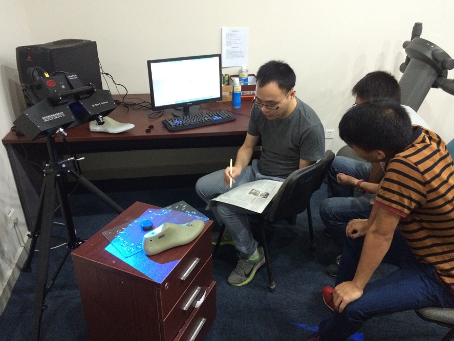 随后员工被分在了“鞋科技实验室”,这个部门的主要职责是鞋产品的3D设计与开发、鞋子各项性能质量的检测和脚型、楦型、足部人体力学等理论的研究。在这里,领导和同事们都很热情,在同学遇到不懂的问题时都会详细的给我们解释清楚,相信在这里实习一定会学到很多宝贵的经验和知识。