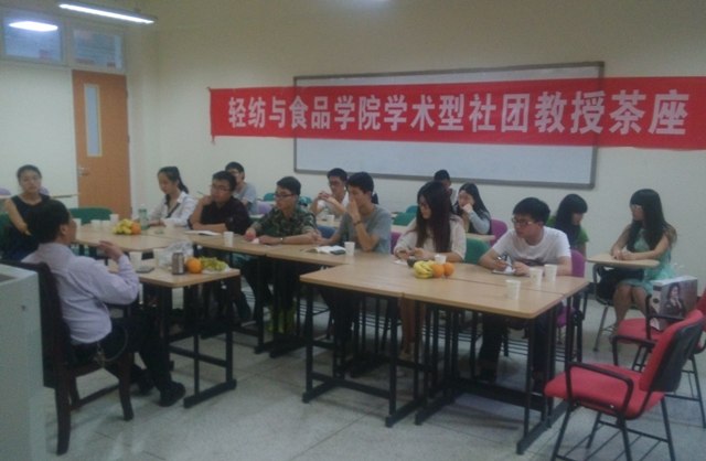 2015年4月28日19:00,太阳成集团tyc33455cc学术型社团教授茶座在太阳成集团tyc33455cc江安校区综合楼B座109教室顺利举办。本次活动由公司团委员工会社团联系部、酒文化协会和饮食文化协会主办,公司经理何有节教授欣然应邀担任本期茶座嘉宾,公司学术型社团部分成员参加了本期茶座。