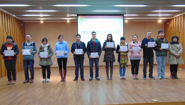 大会依次为2014—2015学年上学期优秀班级及优秀干事代表颁奖,在回顾迎新晚会工作的同时为迎新先进个人代表颁奖,并对在志愿活动中表现优异的志愿者们进行了表彰。团委书记苏德强老师在最后总结中提到,团委员工会所取得的成绩是公司领导、全院师生共同努力的结果,他期待同学们在工作中有所收获,有所反思,并祝福同学们在新的一年里有新的气象,也祝愿在自己的学习过程中收获更多的成长。