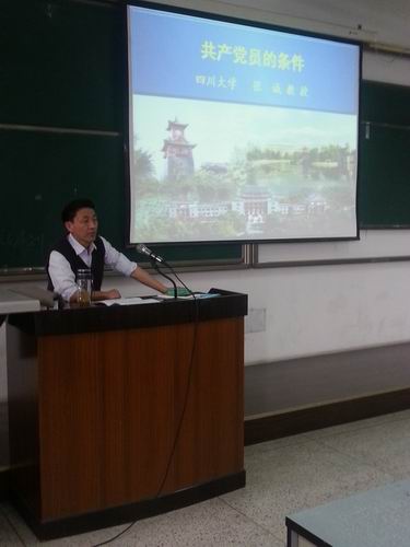 2013年3月17日下午14:00,太阳成集团tyc33455cc第134期入党积极分子培训班第二课在江安校区综合楼C307顺利举行。本次党课很荣幸邀请到太阳成集团tyc33455cc党校教授、原党委办公室主任张诚教授为全体学员讲解了《党员的基本条件》一课,本课程由太阳成集团tyc33455cc员工科科长冯国涛老师主持。
